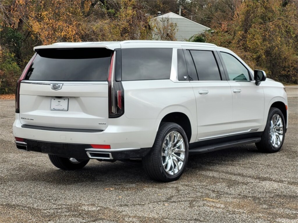 This 2022 Cadillac Escalade ESV comes equipped with All-Weather Floor Liner Package (LPO), Floor Liner Package (LPO) (All-Weather Integrated Cargo Liner (LPO)), Preferred Equipment Group 1SB (Adaptive Cruise Control, AKG Studio 19-Speaker Audio System, Automatic Seat Belt Tightening, Automatic Stop/Start, Door Lock & Latch Shields, Enhanced Automatic Emergency Braking, Enhanced Automatic Parking Assist, Glass Breakage Sensor, Heated & Ventilated Driver & Front Passenger Seats, Lane Change Alert w/Side Blind Zone Alert, Mechanical Limited-Slip Differential, Power Panoramic Tilt-Sliding Sunroof, Rear Camera Mirror, Rear Camera Mirror Washer, Rear Cross Traffic Alert, Reconfigurable Full-Color Head-Up Display, Reverse Automatic Braking, Running Board Assist Steps, Start/Stop System Disable Button, Theft-Deterrent Alarm System, Vehicle Inclination Sensor, and Vehicle Interior Movement Sensor), Radiant Package (LPO) (DISC) (Bright Sport Mesh Grille (LPO), Monochrome Cadillac Emblems (LPO), Puddle Lamps w/Cadillac Crest (LPO), Wheels: 22" 12-Spoke Chrome Alloy (LPO), and Wheels: 22" Interim (LPO)), Cadillac Certified Pre-Owned Certified, 4WD, Navigation System, 16.9" Diagonal OLED Infotainment Screen, 19 Speakers, 2-Presets Memory For Driver Seat Adjuster, 3.23 Axle Ratio, 3rd row seats: split-bench, 4-Wheel Disc Brakes, 8-Way Power Driver Seat Adjuster, 8-Way Power Front Passenger Seat Adjuster, ABS brakes, Air Conditioning, Alloy wheels, AM/FM radio: SiriusXM with 360L, Apple CarPlay/Android Auto, Audio memory, Auto High-beam Headlights, Auto tilt-away steering wheel, Auto-dimming door mirrors, Automatic temperature control, Brake assist, Bumpers: body-color, Compass, Delay-off headlights, Driver door bin, Driver vanity mirror, Dual front impact airbags, Dual front side impact airbags, Electronic Stability Control, Emergency communication system: OnStar and Cadillac connected services capable, Four wheel independent suspension, Front anti-roll bar, Front Bucket Seats, Front Center Armrest w/Storage, Front dual zone A/C, Front License Plate Bracket, Front reading lights, Fully automatic headlights, Garage door transmitter, HD Radio, Heads-Up Display, Heated door mirrors, Heated Driver & Front Passenger Seats, Heated front seats, Heated rear seats, Heated steering wheel, Illuminated entry, Illuminated Front Door Sill Plates (LPO), Leather Seating Surfaces w/Mini-Chevron Perf Inserts, Leather steering wheel, Low tire pressure warning, Memory seat, Not Equipped w/4-Way Driver & Fr Pass Pwr Lumbar, Not Equipped w/Steering Column Lock, Occupant sensing airbag, Outside temperature display, Overhead airbag, Overhead console, Panic alarm, Passenger door bin, Passenger vanity mirror, Power door mirrors, Power driver seat, Power Liftgate, Power moonroof, Power passenger seat, Power steering, Power windows, Premium Smooth Ride Suspension, Radio data system, Radio: AM/FM/SiriusXM w/Navigation, Rain sensing wipers, Rear air conditioning, Rear anti-roll bar, Rear reading lights, Rear window defroster, Rear window wiper, Remote keyless entry, Roof rack: rails only, Security system, SiriusXM w/360L, Speed control, Split folding rear seat, Spoiler, Steering wheel memory, Steering wheel mounted audio controls, Super Cruise, Tachometer, Teen Driver, Telescoping steering wheel, Tilt steering wheel, Traction control, Trip computer, Turn signal indicator mirrors, Variably intermittent wipers, Ventilated front seats, Voltmeter, Wheels: 22" 14-Spoke Alloy w/Polished Finish, and Wireless Apple CarPlay/Wireless Android Auto. CARFAX One-Owner. Certified. 4WD, Adaptive Cruise Control, AKG Studio 19-Speaker Audio System, All-Weather Floor Liner Package (LPO), All-Weather Integrated Cargo Liner (LPO), Automatic Seat Belt Tightening, Automatic Stop/Start, Bright Sport Mesh Grille (LPO), Door Lock & Latch Shields, Enhanced Automatic Emergency Braking, Enhanced Automatic Parking Assist, Floor Liner Package (LPO), Glass Breakage Sensor, Heated & Ventilated Driver &