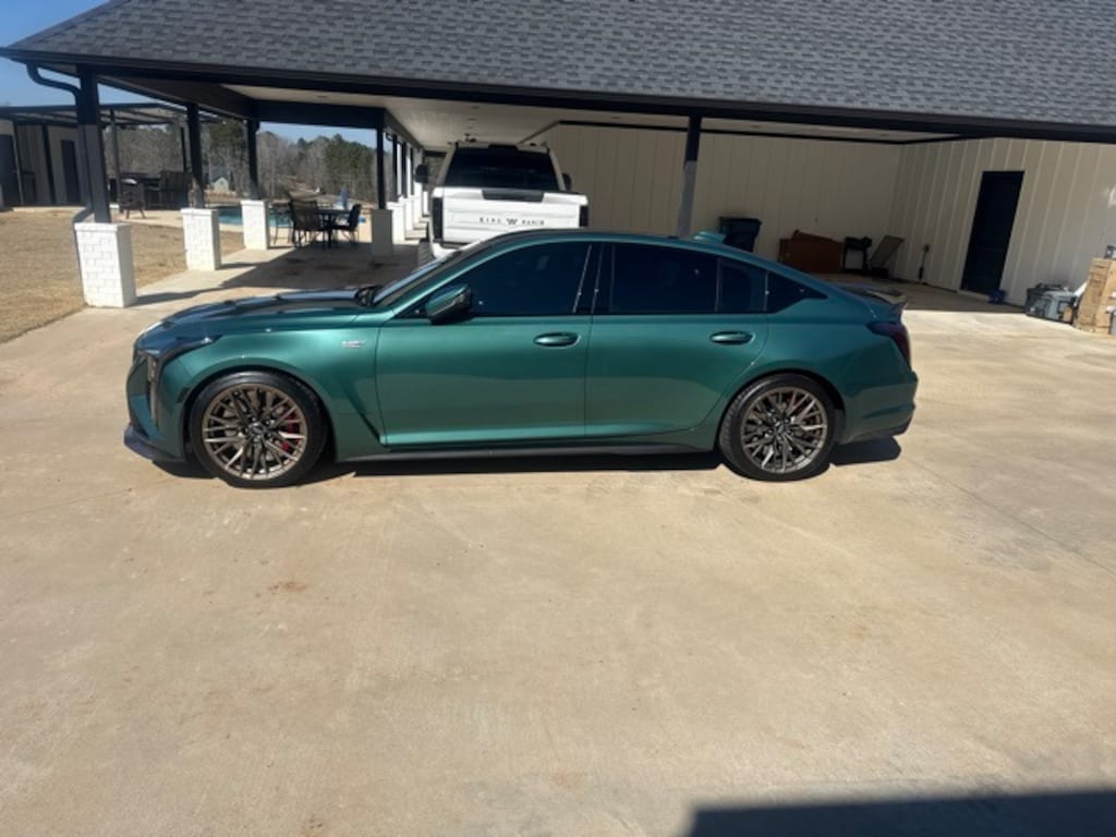 This 2025 Cadillac CT5 comes equipped with Carbon Fiber 1 Package (Carbon Fiber Front Splitter), Carbon Fiber 2 Package (Carbon Fiber Rocker Moldings w/Extensions), Preferred Equipment Group 1SV (3.73 Rear Axle Ratio, Brembo 4-Wheel Antilock High-Performance Brakes, Electronic Cruise Control w/Set & Resume Speed, High Performance Steering Wheel, Inside Rear-View Auto-Dimming Mirror, and Leather-Wrapped Thick Rim Steering Wheel), 16 Speakers, 4-Wheel Disc Brakes, 8-Way Power Driver Seat Adjuster, 8-Way Power Front Passenger Seat Adjuster, ABS brakes, Adaptive suspension, Air Conditioning, AKG Premium 16-Speaker System, Alloy wheels, AM/FM radio: SiriusXM with 360L, Apple CarPlay/Android Auto, Auto-dimming door mirrors, Auto-dimming Rear-View mirror, Automatic temperature control, Brake assist, Bumpers: body-color, Compass, Delay-off headlights, Driver 4-Way Power Lumbar Seat Adjuster, Driver door bin, Driver Power Lumbar Massage Seat, Driver vanity mirror, Dual front impact airbags, Dual front side impact airbags, Electronic Stability Control, Emergency communication system: OnStar and Cadillac connected services capable, Exterior Parking Camera Rear, Four wheel independent suspension, Front 2-Way Adjustable Head Restraints, Front anti-roll bar, Front Bucket Seats, Front Center Armrest, Front dual zone A/C, Front License Plate Bracket, Front Passenger 4-Way Power Lumbar Seat Adjuster, Front Passenger Power Lumbar Massage Seat, Front reading lights, Fully automatic headlights, Garage door transmitter, Heads-Up Display, Heated door mirrors, Heated Driver & Front Passenger Seats, Heated front seats, Heated steering wheel, High Performance Front Bucket Seats, Illuminated entry, Knee airbag, Leather Seating Surfaces w/Mini-Perforated Inserts, Leather steering wheel, Low tire pressure warning, Memory seat, Navigation system: Google Automotive Services Capable, Occupant sensing airbag, Outside temperature display, Overhead airbag, Overhead console, Panic alarm, Passenger door bin, Passenger vanity mirror, Performance Front Bucket Seats, Power door mirrors, Power driver seat, Power passenger seat, Power steering, Power windows, Radio data system, Radio: Google Built-In Infotainment Experience, Rain sensing wipers, Rear anti-roll bar, Rear reading lights, Rear seat center armrest, Rear window defroster, Red Front & Rear Calipers, Remote keyless entry, Security system, SiriusXM w/360L Trial Subscription, Speed control, Speed-sensing steering, Split folding rear seat, Spoiler, Sport steering wheel, Steering wheel memory, Steering wheel mounted audio controls, Sueded Microfiber Shifter, Sueded Microfiber Steering Wheel, Tachometer, Telescoping steering wheel, Tilt steering wheel, Tire Inflator Kit, Torch Red Seat Belt Color, Traction control, Trip computer, Turn signal indicator mirrors, Variably intermittent wipers, Ventilated Driver & Front Passenger Seats, Ventilated front seats, Voltmeter, Wheels: 19" Alum Alloy w/Polished/Dk Android Finish, and Wheels: 19" Aluminum Alloy w/Tech Bronze Finish. Clean CARFAX.