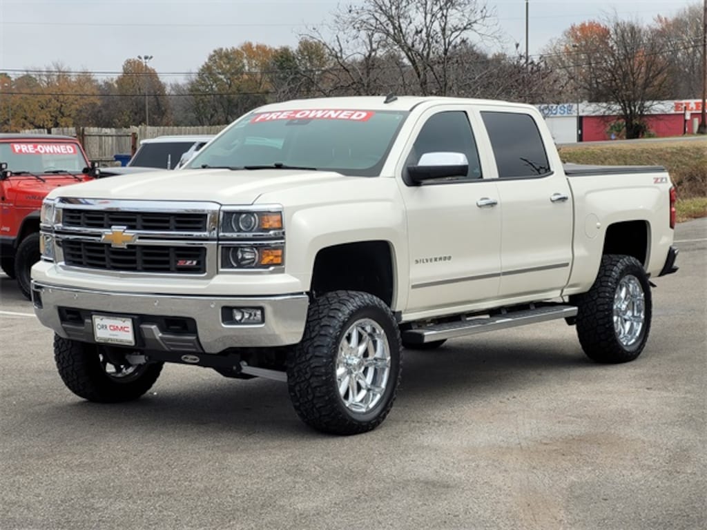This 2014 Chevrolet Silverado 1500 comes equipped with Driver Alert Package (Ultrasonic Front & Rear Park Assist), LTZ Plus Package (Leather Wrapped Heated Steering Wheel and Power Adjustable Pedals), Off-Road Suspension Package (Front Frame-Mounted Black Recovery Hooks and Hill Descent Control), Preferred Equipment Group 2LZ (110-Volt AC Power Outlet, 150 Amp Alternator, 4.2" Diagonal Color Display Driver Info Center, 6 Speaker Audio System, Auto-Dimming Inside Rear-View Mirror, Auxiliary External Transmission Oil Cooler, Bluetooth® For Phone, Chrome Bodyside Moldings, Chrome Cap Power-Adjustable Heated Outside Mirrors, Chrome Door Handles, Chrome Grille Surround, Chrome Mirror Caps, Color-Keyed Carpeting w/Rubberized Vinyl Floor Mats, Deep-Tinted Glass, Driver & Front Passenger Illuminated Vanity Mirrors, Dual-Zone Automatic Climate Control, EZ Lift & Lower Tailgate, Front Chrome Bumper, Front Halogen Fog Lamps, Heavy-Duty Rear Locking Differential, Leather Wrapped Steering Wheel w/Cruise Controls, Manual Tilt Wheel Steering Column, OnStar 6 Months Directions & Connections Plan, Power Sliding Rear Window, Power Windows w/Driver Express Up, Rear 60/40 Folding Bench Seat (Folds Up), Rear Chrome Bumper, Rear Vision Camera w/Dynamic Guide Lines, Rear Wheelhouse Liners, Remote Keyless Entry, Remote Vehicle Starter System, Single Slot CD/MP3 Player, Steering Wheel Audio Controls, Theft Deterrent System (Unauthorized Entry), Universal Home Remote, and Electric Rear-Window Defogger), Trailering Equipment, 6-Speed Automatic Electronic with Overdrive, 4WD, Cocoa/Dune Leather, 4 Movable Upper Cargo Tie Downs, 4-Wheel Disc Brakes, 40/20/40 Front Split Bench Seat, 6 Speakers, 6" Rectangular Chromed Tubular Assist Steps, ABS brakes, Air Conditioning, Alloy wheels, AM/FM radio: SiriusXM, Auto-dimming door mirrors, Auto-dimming Rear-View mirror, Automatic temperature control, Bodyside moldings, Bose Speaker System, Brake assist, Bumpers: chrome, CD player, Compass, Delay-off headlights, Driver door bin, Driver vanity mirror, Dual front impact airbags, Dual front side impact airbags, Electronic Stability Control, Emergency communication system: OnStar Directions & Connections, Exterior Parking Camera Rear, Floor Mounted Console, Front anti-roll bar, Front Center Armrest w/Storage, Front dual zone A/C, Front fog lights, Front Full Feature Power Reclining Bucket Seats, Front License Plate Kit, Front reading lights, Front wheel independent suspension, Fully automatic headlights, Garage door transmitter, Heated & Cooled Driver & Front Passenger Seats, Heated door mirrors, Heated Driver & Front Passenger Seats, Heated front seats, Illuminated entry, Interior Driver Assist Handle (LPO), Leather Appointed Seat Trim, LED Cargo Box Lighting, Low tire pressure warning, Manual Tilt/Telescoping Steering Column, Memory seat, Occupant sensing airbag, Outside temperature display, Overhead airbag, Overhead console, Panic alarm, Passenger door bin, Passenger vanity mirror, Polished Exhaust Tip, Power door mirrors, Power driver seat, Power passenger seat, Power steering, Power windows, Premium audio system: Chevrolet MyLink, Radio data system, Radio: AM/FM 8" Diagonal Color Touch Screen, Radio: AM/FM Stereo w/8" Diagonal Color Touch Nav., Rear reading lights, Rear seat center armrest, Rear step bumper, Rear window defroster, Remote keyless entry, Security system, SiriusXM Satellite & HD Radio, Speed control, Speed-sensing steering, Split folding rear seat, Steering wheel mounted audio controls, Tachometer, Tilt steering wheel, Traction control, Trip computer, Turn signal indicator mirrors, Variably intermittent wipers, Voltmeter, Wheel Locks (Set of 4) (LPO), Wheels: 18" x 8.5" Bright Machined Aluminum, and Wheels: 20" x 9" Chrome. Clean CARFAX. Carfax no accidents, 6-Speed Automatic Electronic with Overdrive, 4WD, Cocoa/Dune Leather, 110-Volt AC Power Outlet, 150 Amp Alternator, 4.2" Diagonal Color Display Driver Info Center, 6 Speaker Audio System, Auto-Di