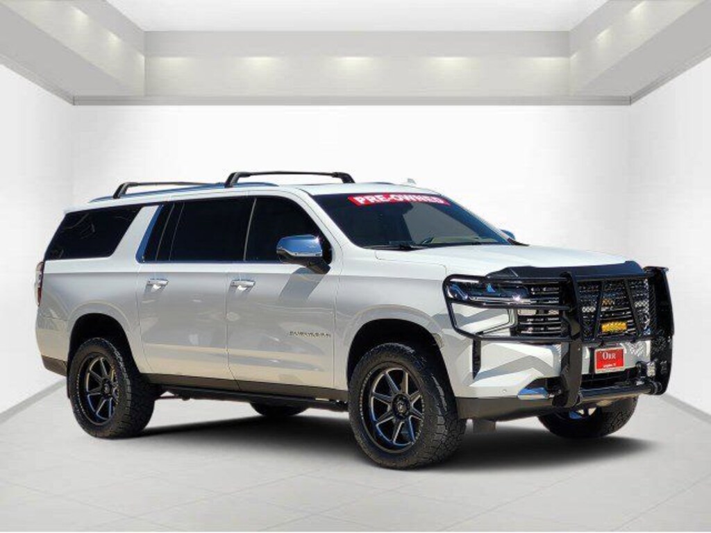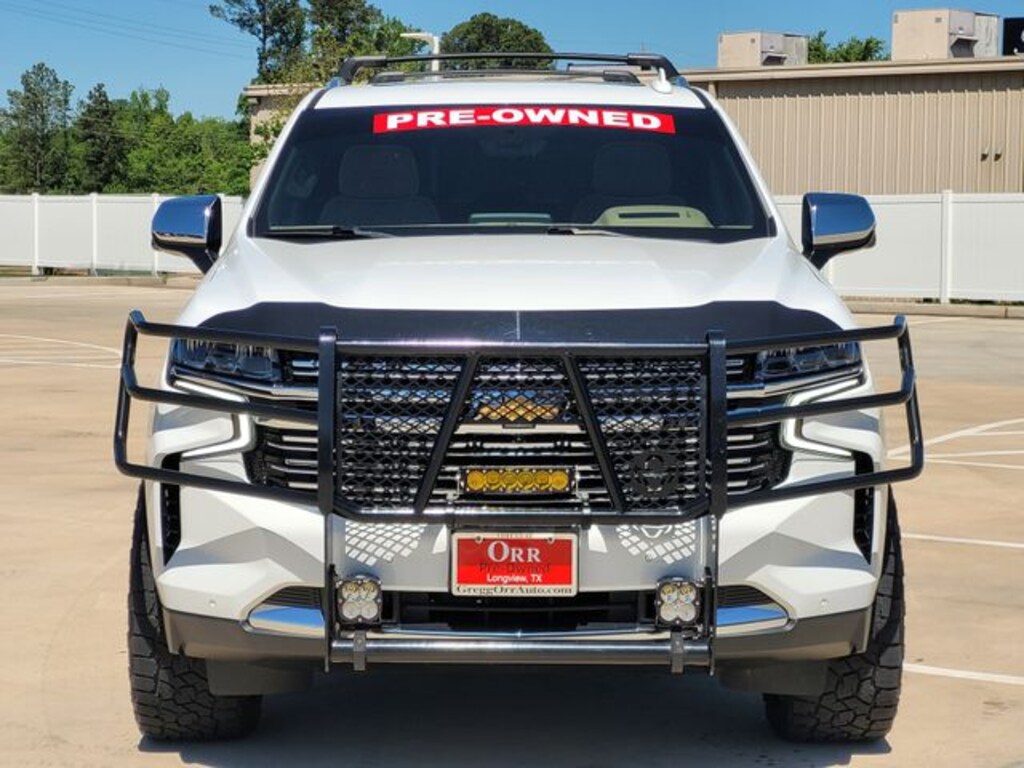 This 2021 Chevrolet Suburban comes equipped with Advanced Trailering Package (Advanced Trailering System, Hitch Guidance w/Hitch View, Integrated Trailer Brake Controller, and Trailer Side Blind Zone Alert), Enhanced Display & Alert Package (15" Diagonal Multi-Color Head-Up Display, HD Surround Vision, Inside Rearview Auto-Dimming Rear Camera Mirror, Rear Camera Mirror Washer, and Rear Pedestrian Alert), License Plate Front Mounting Package, Max Trailering Package (Extra Capacity Cooling System), Preferred Equipment Group 1LZ (12-Way Power Driver & Passenger Seat Adjusters, 1st & 2nd Row Color-Keyed Carpeted Floor Mats, 2 USB Data Ports, 2-Speed Active Electronic AutoTrac Transfer Case, 3rd Row 60/40 Power-Folding Split-Bench, Auto-Dimming Inside Rear-View Mirror, Automatic Heated Steering Wheel, Bose 10-Speaker Surround w/CenterPoint, Bright Front & Rear Door Sill Plates, Chrome Door Handles w/Body-Color Strip, Chrome Mirror Caps, Color-Keyed Carpeting Floor Covering, Driver & Front Outboard Passenger Airbags, Dual Exhaust System, Enhanced Driver Information Center, Floor Console w/Storage Area, Front & Rear Park Assist, Hands-Free Rear Power Programmable Liftgate, HD Radio, Heated & Ventilated Driver & Front Passenger Seats, Heated 2nd Row Outboard Seats, Heated Driver & Front Passenger Seats, Hill Descent Control, Infotainment Display, Lane Change Alert w/Side Blind Zone Alert, Lane Keep Assist w/Lane Departure Warning, Leather-Wrapped Steering Wheel, LED Daytime Running Lamps, Memory Settings, Outside Heated Power-Adjustable Mirrors, Power Release 2nd Row Bucket Seats, Power Tilt & Telescopic Steering Column, Rear Cross Traffic Alert, Remote Start, Safety Alert Seat, SiriusXM Radio w/360L, and Universal Home Remote), Premium Package (Adaptive Cruise Control, Dual-Pane Power Panoramic Sunroof, and Enhanced Automatic Emergency Braking), 1.5 kW Heater/Defrost Air System, 10 Speakers, 20" x 9" Polished Aluminum Wheels, 250 Amps Alternator, 3.23 Rear Axle Ratio, 3rd row seats: split-bench, 4-Wheel Disc Brakes, 900 Cold-Cranking Amps Battery, ABS brakes, Adaptive suspension, Air Conditioning, Alloy wheels, AM/FM radio: SiriusXM with 360L, Apple CarPlay/Android Auto, Auto High-beam Headlights, Auto-dimming door mirrors, Auto-dimming Rear-View mirror, Auto-leveling suspension, Automatic temperature control, Brake assist, Bumpers: body-color, Compass, Delay-off headlights, Diesel B20 Fuel, Driver door bin, Driver vanity mirror, Dual front impact airbags, Dual front side impact airbags, Electronic Stability Control, Emergency communication system: OnStar and Chevrolet connected services capable, Four wheel independent suspension, Front anti-roll bar, Front Bucket Seats, Front Center Armrest, Front dual zone A/C, Front reading lights, Fully automatic headlights, Garage door transmitter, Heated door mirrors, Heated front seats, Heated rear seats, Heated steering wheel, Illuminated entry, Leather steering wheel, Low tire pressure warning, Magnetic Ride Control Suspension, Memory seat, Navigation System, Occupant sensing airbag, Outside temperature display, Overhead airbag, Overhead console, Panic alarm, Passenger door bin, Passenger vanity mirror, Perforated Leather Seating Surfaces, Power door mirrors, Power driver seat, Power Liftgate, Power passenger seat, Power steering, Power windows, Premium audio system: Chevrolet Infotainment 3 Premium, Radio: Chevrolet Infotainment 3 Premium System, Rain sensing wipers, Rear air conditioning, Rear anti-roll bar, Rear reading lights, Rear window defroster, Rear window wiper, Remote keyless entry, Roof rack: rails only, Security system, Single Outlet Exhaust, Speed control, Speed-sensing steering, Split folding rear seat, Spoiler, Steering wheel memory, Steering wheel mounted audio controls, Tachometer, Telescoping steering wheel, Tilt steering wheel, Traction control, Trip computer, Turn signal indicator mirrors, Upper & Lower Active Aero Shutters, Variably intermittent wipers, Ventilated front