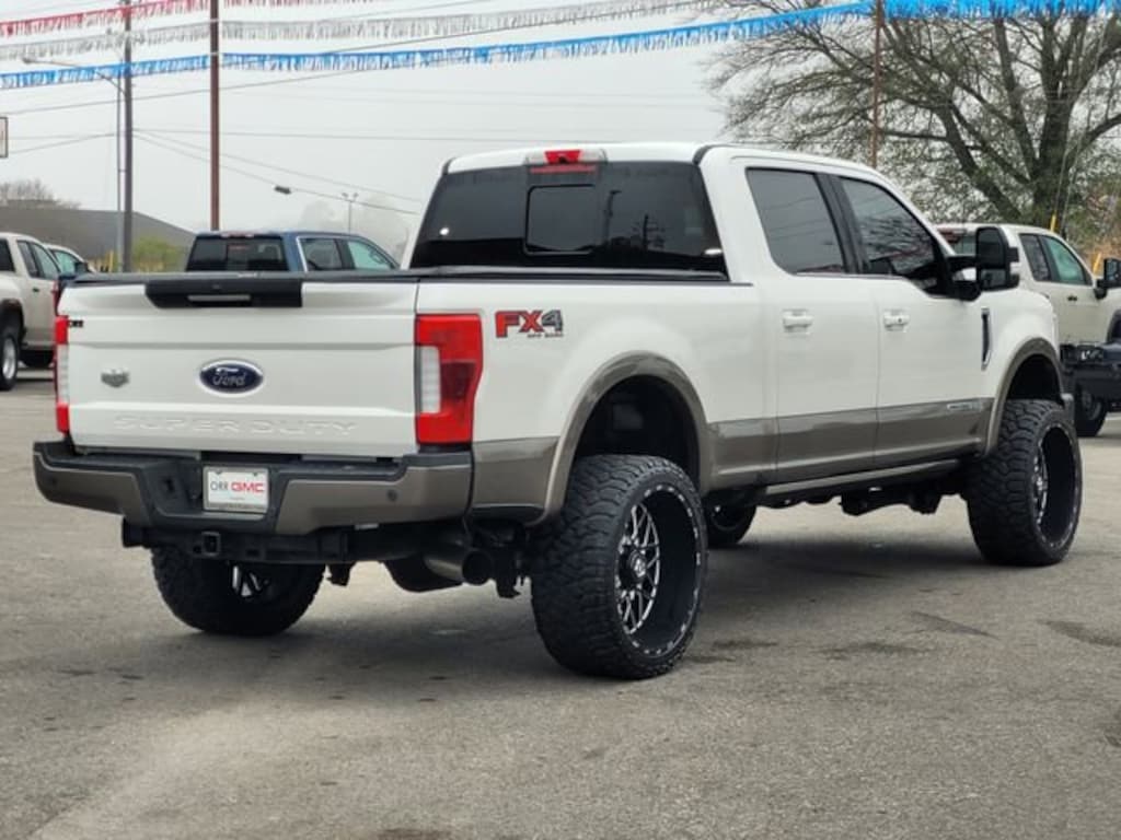 This 2019 Ford F-250SD comes equipped with FX4 Off-Road Package (Hill Descent Control, Off-Road Specifically Tuned Shock Absorbers, and Unique FX4 Off-Road Box Decal), GVWR: 10,000 lb Payload Package, King Ranch Ultimate Package (BLIS Blind Spot Information System, Multi-Contour Seats, Power-Deployable Running Boards, Quad Beam LED Headlamps & LED Taillamps, Tailgate Step & Handle, and Twin Panel Power Moonroof), Order Code 700A, 4WD, Navigation System, 10 Speakers, 110V/400W Outlet, 4-Wheel Disc Brakes, ABS brakes, Adjustable pedals, Air Conditioning, All-Weather Floor Mats, Alloy wheels, AM/FM radio: SiriusXM, AppLink/Apple CarPlay and Android Auto, Auto High-beam Headlights, Auto tilt-away steering wheel, Auto-dimming Rear-View mirror, Automatic temperature control, Brake assist, Compass, Delay-off headlights, Driver door bin, Driver vanity mirror, Dual front impact airbags, Dual front side impact airbags, Electronic Stability Control, Emergency communication system: SYNC 3 911 Assist, Engine Block Heater, Exterior Parking Camera Rear, Flow-Through Console, Front anti-roll bar, Front Bucket Seats, Front Center Armrest, Front dual zone A/C, Front fog lights, Front reading lights, Fully automatic headlights, Garage door transmitter, Heated door mirrors, Heated front seats, Heated steering wheel, Illuminated entry, Illuminated running boards, Leather steering wheel, Low tire pressure warning, Memory seat, Outside temperature display, Overhead airbag, Overhead console, Panic alarm, Passenger door bin, Passenger vanity mirror, Pedal memory, Power door mirrors, Power driver seat, Power passenger seat, Power steering, Power windows, Radio data system, Radio: B&O Sound System by Bang & Olufsen, Rain sensing wipers, Rear CHMSL Camera, Rear Parking Sensors, Rear reading lights, Rear seat center armrest, Rear step bumper, Rear window defroster, Remote keyless entry, Security system, SiriusXM Radio, Speed control, Split folding rear seat, Steering wheel memory, Steering wheel mounted A/C controls, Steering wheel mounted audio controls, SYNC 3 Communications & Entertainment System, Tachometer, Telescoping steering wheel, Tilt steering wheel, Traction control, Trip computer, Turn signal indicator mirrors, Ultimate Trailer Tow Camera System, Unique King Ranch Leather 40/Console/40 Front Seats, Upfitter Switches (6), Variably intermittent wipers, Ventilated front seats, and Wheels: 18 Bright Machined Cast Aluminum. Carfax no accidents, 4WD, BLIS Blind Spot Information System, FX4 Off-Road Package, GVWR: 10,000 lb Payload Package, Hill Descent Control, King Ranch Ultimate Package, Multi-Contour Seats, Navigation System, Off-Road Specifically Tuned Shock Absorbers, Order Code 700A, Power-Deployable Running Boards, Quad Beam LED Headlamps & LED Taillamps, Tailgate Step & Handle, Twin Panel Power Moonroof, Unique FX4 Off-Road Box Decal.