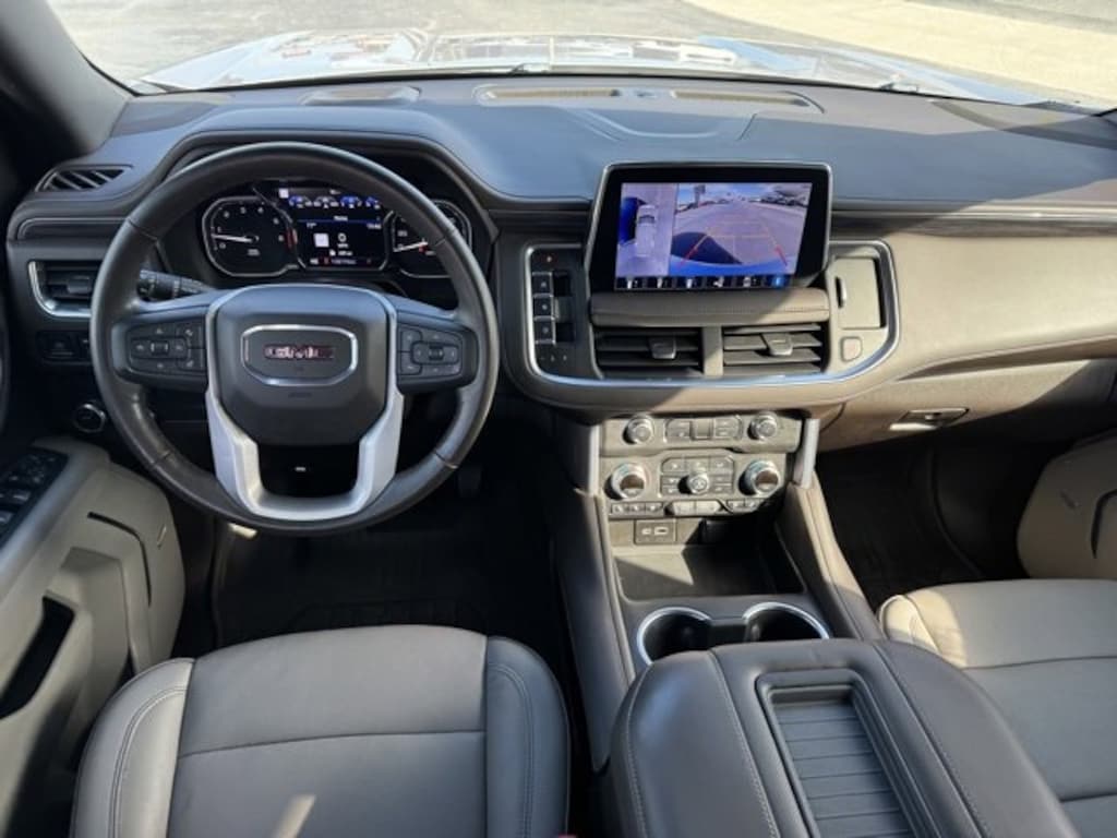 This 2021 GMC Yukon comes equipped with Preferred Equipment Group 4SA (12-Way Power Seat Adjusters, 2 Presets For Power Driver Seat, Bose 9-Speaker Stereo Audio System Feature, Bright Chrome Bodyside Moldings, Bright Front & Rear Door Sill Plates, Chrome Door Handles w/Body-Color Strip, Hands-Free Power Programmable Rear Liftgate, Heated & Ventilated Driver & Front Passenger Seats, Heated Driver & Front Passenger Seats, Inside Rear-View Auto-Dimming Mirror, Safety Alert Seat, and Universal Home Remote), Rear Media & Nav Package (Radio: AM/FM/SiriusXM w/Navigation, Rear Seat Media System, HD Radio, and SiriusXM w/360L), SLT Luxury Package (2 Presets For Outside Rearview Mirrors, 3rd Row 60/40 Power-Folding Split-Bench Seat, HD Surround Vision, Heated 2nd Row Outboard Position Seats, Heated Automatic Steering Wheel, Outside Heated Power-Adjustable Mirrors, Power Release 2nd Row 60/40 Split-Folding Bench Seat, Power Tilt & Telescopic Steering Column, and Rear Pedestrian Alert), SLT Premium Package (Dual-Pane Panoramic Power Sunroof), 3.23 Rear Axle Ratio, 3rd row seats: split-bench, 4-Wheel Disc Brakes, 9 Speakers, ABS brakes, Air Conditioning, Alloy wheels, AM/FM radio: SiriusXM with 360L, Apple CarPlay/Android Auto, Auto High-beam Headlights, Auto-dimming Rear-View mirror, Automatic Emergency Braking, Automatic temperature control, Bodyside moldings, Brake assist, Bumpers: body-color, Compass, Delay-off headlights, Driver door bin, Driver vanity mirror, Dual front impact airbags, Dual front side impact airbags, Electronic Stability Control, Emergency communication system: OnStar and GMC connected services capable, Following Distance Indicator, Forward Collision Alert, Four wheel independent suspension, Front & Rear Park Assist, Front anti-roll bar, Front Bucket Seats, Front Center Armrest, Front dual zone A/C, Front fog lights, Front Pedestrian Braking, Front reading lights, Fully automatic headlights, Garage door transmitter, Heated door mirrors, Heated front seats, Illuminated entry, IntelliBeam Automatic High Beam On/Off, Lane Change Alert w/Side Blind Zone Alert, Lane Keep Assist w/Lane Departure Warning, Leather steering wheel, Low tire pressure warning, Memory seat, Not Equipped w/Automatic Stop/Start, Not Equipped w/Steering Column Lock, Not Equipped w/Wireless Charging, Occupant sensing airbag, Outside temperature display, Overhead airbag, Overhead console, Panic alarm, Passenger door bin, Passenger vanity mirror, Perforated Leather Seating Surfaces, Power door mirrors, Power driver seat, Power Liftgate, Power passenger seat, Power Release 2nd Row Bucket Seats, Power steering, Power windows, Premium Smooth Ride Suspension, Radio: AM/FM/SiriusXM, Rain sensing wipers, Rear air conditioning, Rear anti-roll bar, Rear Cross Traffic Alert, Rear reading lights, Rear seat center armrest, Rear window defroster, Rear window wiper, Remote keyless entry, Roof rack: rails only, Security system, Speed control, Speed-sensing steering, Split folding rear seat, Spoiler, Steering wheel mounted audio controls, Tachometer, Telescoping steering wheel, Tilt steering wheel, Traction control, Trip computer, Variably intermittent wipers, Ventilated front seats, Voltmeter, and Wheels: 20 x 9 6-Spoke Polished Aluminum. CARFAX One-Owner. One Owner Carfax, 12-Way Power Seat Adjusters, 2 Presets For Outside Rearview Mirrors, 2 Presets For Power Driver Seat, 3rd Row 60/40 Power-Folding Split-Bench Seat, Bose 9-Speaker Stereo Audio System Feature, Bright Chrome Bodyside Moldings, Bright Front & Rear Door Sill Plates, Chrome Door Handles w/Body-Color Strip, Dual-Pane Panoramic Power Sunroof, Hands-Free Power Programmable Rear Liftgate, HD Surround Vision, Heated & Ventilated Driver & Front Passenger Seats, Heated 2nd Row Outboard Position Seats, Heated Automatic Steering Wheel, Heated Driver & Front Passenger Seats, Inside Rear-View Auto-Dimming Mirror, Outside Heated Power-Adjustable Mirrors, Power Rel