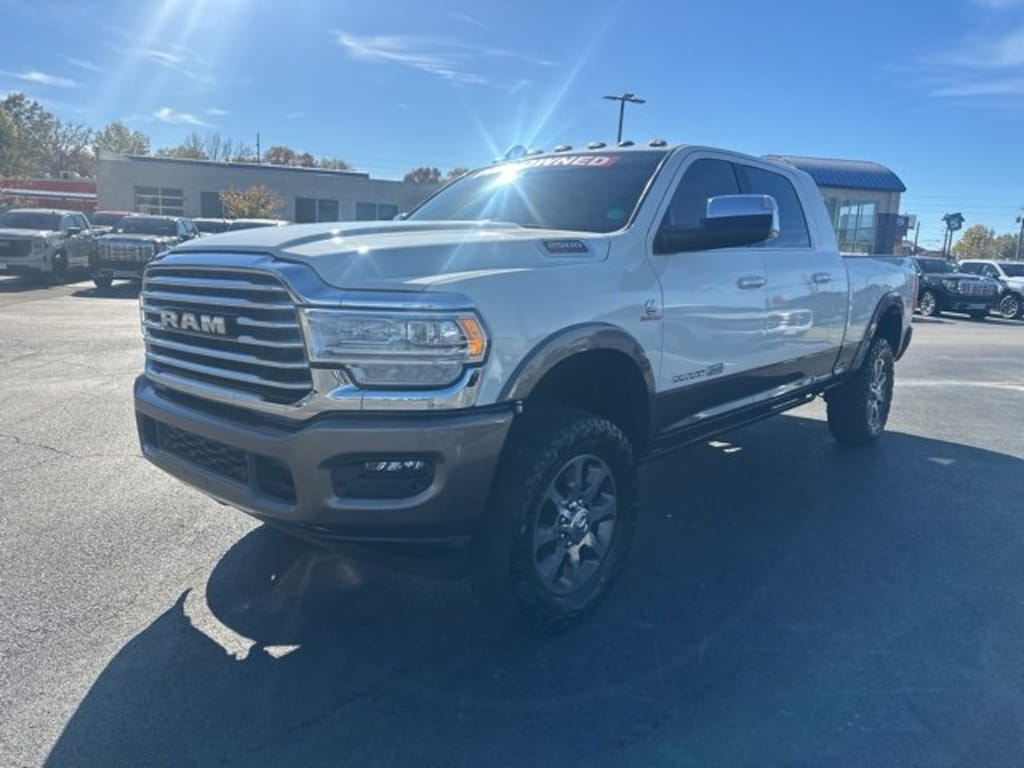 This 2022 Ram 2500 comes equipped with Longhorn Level 1 Equipment Group (17 Speaker harman kardon Premium Sound, Blind Spot & Cross Path Detection, GPS Navigation, Power Deployable Running Boards, Radio: Uconnect 5 Nav w/12.0 Display, Ramcharger Wireless Charging Pad, 12 Touchscreen Display, 4G LTE Wi-Fi Hot Spot, Alexa Built-In, All R1 High Radios, All Radio Equipped Vehicles, Apple CarPlay, Connected Travel & Traffic Services, Connectivity - US/Canada, Disassociated Touchscreen Display, For Details, Visit DriveUconnect.com, For More Info, Call 800-643-2112, Global Telematics Box Module (TBM), Google Android Auto, GPS Antenna Input, HD Radio, Integrated Voice Command w/Bluetooth, Off-Road Information Pages, Selectable Tire Fill Alert, SiriusXM Radio Service, and SiriusXM w/360L), Quick Order Package 2HK Longhorn, Safety Group (DISC) (Adaptive Cruise Control w/Stop, Adaptive Steering System, Digital Rearview Mirror, Full Speed Forward Collision Warning Plus, and Lane Keep Assist), Navigation System, 10 Speakers, 115V Auxiliary Rear Power Outlet, 2 Way Rear Headrest Seat, 220 Amp Alternator, 3.73 Axle Ratio, 4 Way Front Headrests, 4-Wheel Disc Brakes, 5th Wheel/Gooseneck Towing Prep Group, 8.4 Touchscreen Display, ABS brakes, Active Noise Control System, Adjustable pedals, Air Conditioning, Alloy wheels, AM/FM radio: SiriusXM with 360L, Apple CarPlay/Android Auto, Audio memory, Auto High-beam Headlights, Auto-dimming Rear-View mirror, Automatic temperature control, Blind Spot & Cross Path Detection (DISC), Brake assist, Bucket Seats, Bumpers: chrome, Center Hub, Clearance Lamps, Compass, Delay-off headlights, Driver door bin, Driver vanity mirror, Dual front impact airbags, Dual front side impact airbags, Electronic Stability Control, Electronically Controlled Throttle, Front anti-roll bar, Front Bucket Seats, Front Center Armrest w/Storage, Front dual zone A/C, Front fog lights, Front License Plate Bracket, Front reading lights, Front Seat Back Map Pockets, Full Length Premium Upgraded Floor Console, Fully automatic headlights, Garage door transmitter, Genuine wood console insert, Genuine wood dashboard insert, Genuine wood door panel insert, Heated door mirrors, Heated Front Seats, Heated front seats, Heated rear seats, Heated Second Row Seats, Heated Steering Wheel, Heated steering wheel, High Back Seats, Illuminated entry, Integrated Center Stack Radio, Leather steering wheel, Low tire pressure warning, Memory seat, Occupant sensing airbag, Outside temperature display, Overhead airbag, Overhead console, Panic alarm, ParkView Rear Back-Up Camera, Passenger door bin, Passenger vanity mirror, Pedal memory, Power 2-Way Driver Lumbar Adjust, Power 2-Way Passenger Lumbar Adjust, Power Adjust 8-Way Driver Seat, Power Adjust 8-Way Front Passenger Seat, Power door mirrors, Power driver seat, Power passenger seat, Power steering, Power windows, Premium Filigree Leather Seats, Radio data system, Radio: Uconnect 5 Nav w/8.4 Display, Radio/Driver Seat/Mirrors/Pedals Memory, Rain sensing wipers, Rear 60/40 Folding Seat, Rear anti-roll bar, Rear reading lights, Rear seat center armrest, Rear step bumper, Rear window defroster, Remote keyless entry, Security system, Speed control, Split folding rear seat, Steering wheel mounted audio controls, Tachometer, Tilt steering wheel, Tip Start, Traction control, Trip computer, Turn signal indicator mirrors, Variably intermittent wipers, Vendor Painted Cargo Box, Vendor Painted Cargo Box Tracking, Ventilated Front Seats, Ventilated front seats, Voltmeter, Wheels: 18 x 8.0 Diamond Cut Face Aluminum, and Wheels: 20 x 8.0 Aluminum w/Walnut PocketS. 17 Speaker harman kardon Premium Sound, Adaptive Cruise Control w/Stop, Adaptive Steering System, Blind Spot & Cross Path Detection, Digital Rearview Mirror, Full Speed Forward Collision Warning Plus, GPS Navigation, Lane Keep Assist, Longhorn Level 1 Equipment Group, Navigation System, Power Deployable Runn